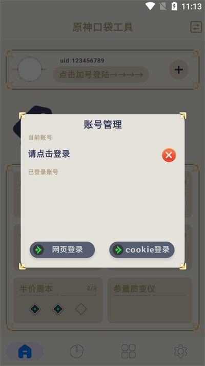 2、進(jìn)入到軟件界面之后,需要點(diǎn)擊上方的【+】登錄自己的原神賬號(hào);