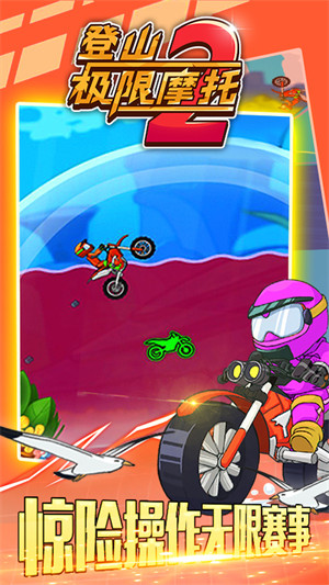 登山極限摩托2游戲是一款模擬摩托駕駛類的游戲,玩家需要駕駛一輛炫酷的摩托車,在不同場景的賽道上進行駕駛,注意路上會有很多障礙物和突然出現(xiàn)的陷阱,玩家一定要保持好平衡,不要從摩托車上摔倒哦,如果你感興趣的話,就快來玩玩看吧!