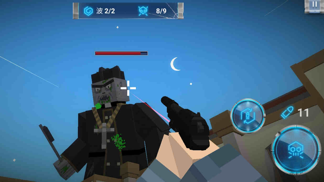 2、以像素方塊風(fēng)格繪制,畫面采用像素風(fēng)格,收集各種資源,努力消滅僵尸。