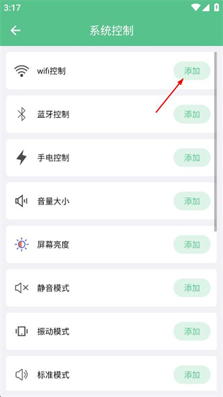 3、在系統(tǒng)控制頁(yè)面點(diǎn)擊wifi控制后的添加按鈕,進(jìn)行添加操作。