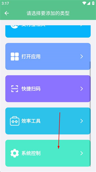 2、在添加類(lèi)型選擇頁(yè)面點(diǎn)擊系統(tǒng)控制選項(xiàng),進(jìn)入系統(tǒng)控制頁(yè)面。