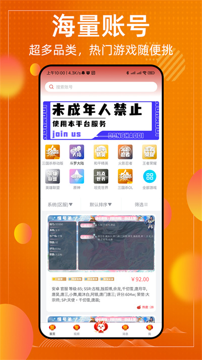 懂號(hào)弟賬號(hào)交易服務(wù)為大家?guī)硪粋€(gè)更安全的游戲賬號(hào)交易的平臺(tái),從中可以看到有著專業(yè)、規(guī)范化的交易平臺(tái),在對于游戲賬號(hào)的交易上更加安全,從中可以看到各種熱門游戲的賬號(hào)選擇,帶來不同等級的賬號(hào)交易。