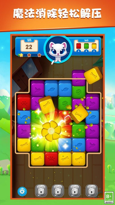 3、游戲畫面配有精美的消除特效,多種創(chuàng)意道具組合,讓每一次消除都充滿驚喜。