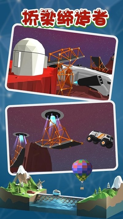 橋梁締造者手機版是一款模擬搭建游戲,玩家通過收集游戲中的材料來搭建橋梁,根據(jù)物理算法,包括許多橋梁設計參考,橋梁施工建筑材料的自由使用,對橋梁承載能力、抗風、抗震等的理解,然后計算出最優(yōu)的橋梁建造方案,保證汽車能夠通過,游戲畫面是精致的卡通風格,樂趣十足。