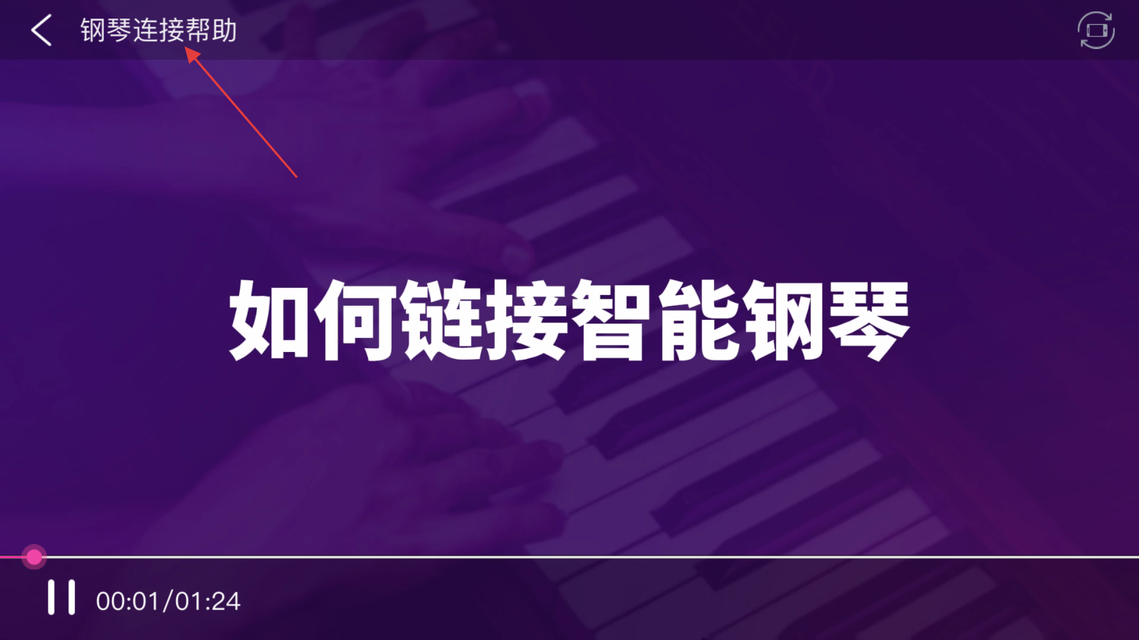 4、點(diǎn)擊幫助視頻后,就會(huì)進(jìn)入鋼琴連接幫助界面,可觀看如何鏈接智能鋼琴的視頻教程。