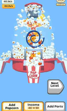 3、使用金幣購買新裝備或升級現(xiàn)有裝備,不同的設(shè)備產(chǎn)生爆米花的速度不同。