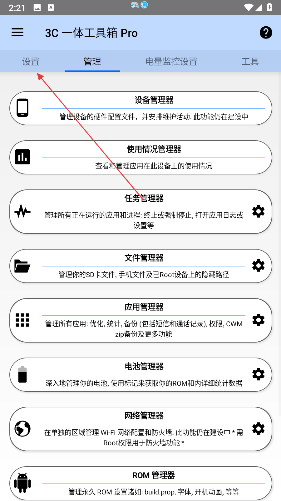 1、打開3C一體工具箱APP,點(diǎn)擊頂部設(shè)置選項(xiàng)卡,進(jìn)入設(shè)置界面。