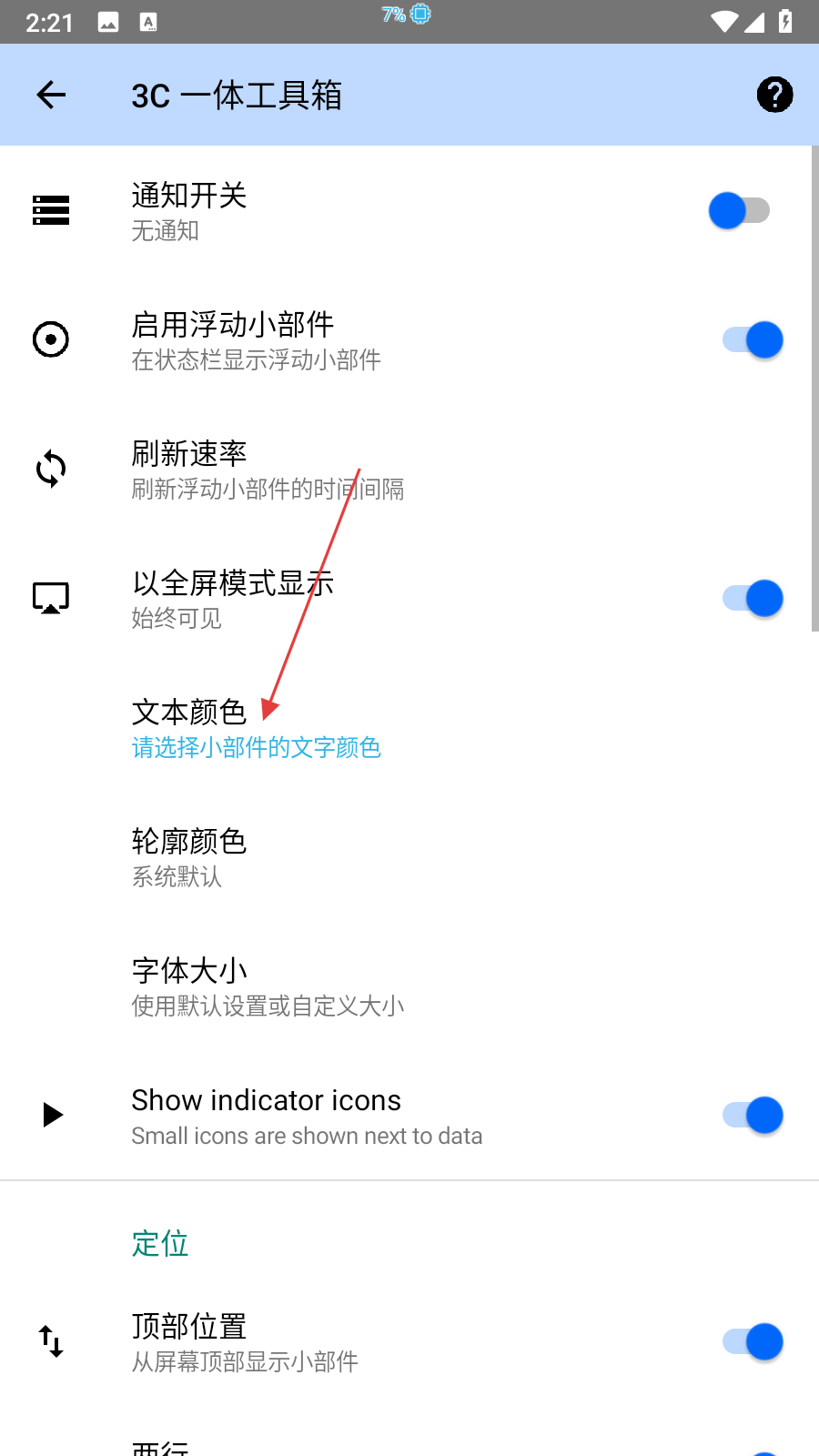 3、在浮動(dòng)小部件設(shè)置頁(yè)面,找到文本顏色選項(xiàng)并點(diǎn)擊,彈出顏色選擇面板。