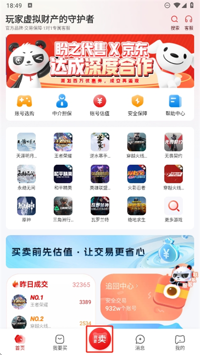 每天不斷推出各種熱門游戲的賬號選擇,為游戲玩家們帶來一個更加豐富的游戲體驗,為達(dá)成更高效的線上交易,平臺提供了交易中間擔(dān)保服務(wù),為大家的游戲賬號提供全面交易保障,防止游戲賬號找回等問題。