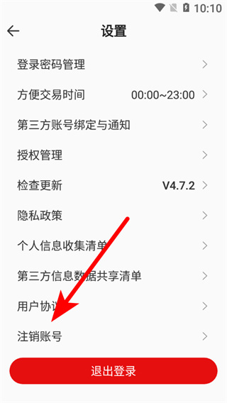3、在設(shè)置界面,點擊注銷賬號選項,進(jìn)入注銷協(xié)議頁面。