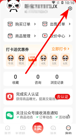 2、在個人中心頁面,點擊右上角設(shè)置圖標(biāo),進(jìn)入設(shè)置界面。