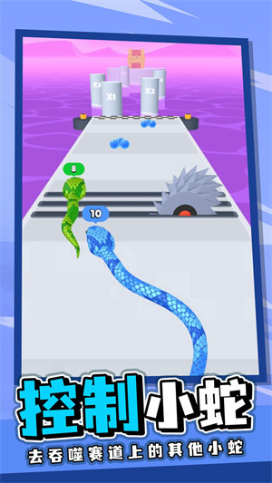 3D貪吃蛇最新版是一款輕松有趣的小游戲,玩家需要在游戲中不斷的向前沖,吞食各種不同的食物,達到快速成長的目的,玩家需要靈活的移動小蛇并且快速的吞咽那些食物,需要注意的是,玩家需要在游戲的過程中不碰到其他的小蛇,否則就會回到起點重新開始。
