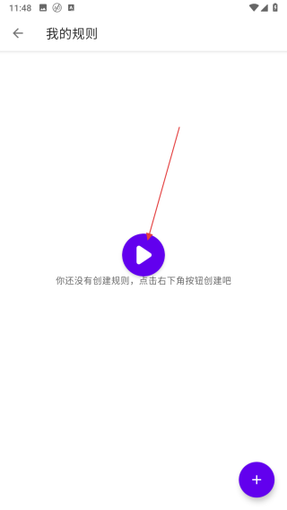 2、在我的規(guī)則頁(yè)面,點(diǎn)擊右下角的紫色+按鈕,啟動(dòng)規(guī)則創(chuàng)建流程。