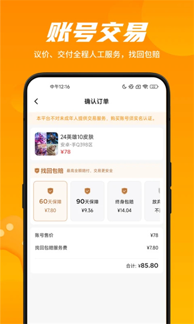 【找回包賠】選購找回包賠服務(wù),遇到賣家找回賬號的情況,平臺將全額賠付