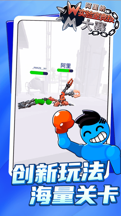 阿里納實(shí)驗(yàn)室競(jìng)技大賽手游是一款非常有趣好玩的手游模擬格斗游戲。游戲中玩家將控制角色體驗(yàn)?zāi)M拳擊格斗游戲,畫(huà)面采用開(kāi)通畫(huà)風(fēng),人物形象也是卡通橡膠人,看起來(lái)非常的有意思,感興趣的朋友,請(qǐng)下載試試吧!