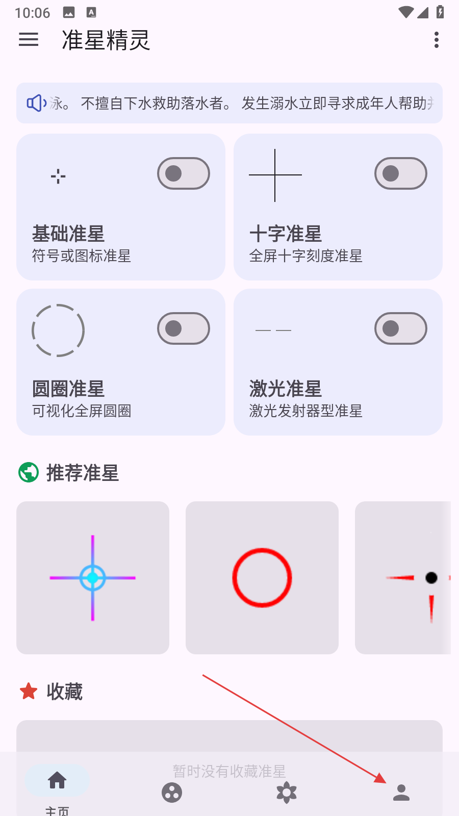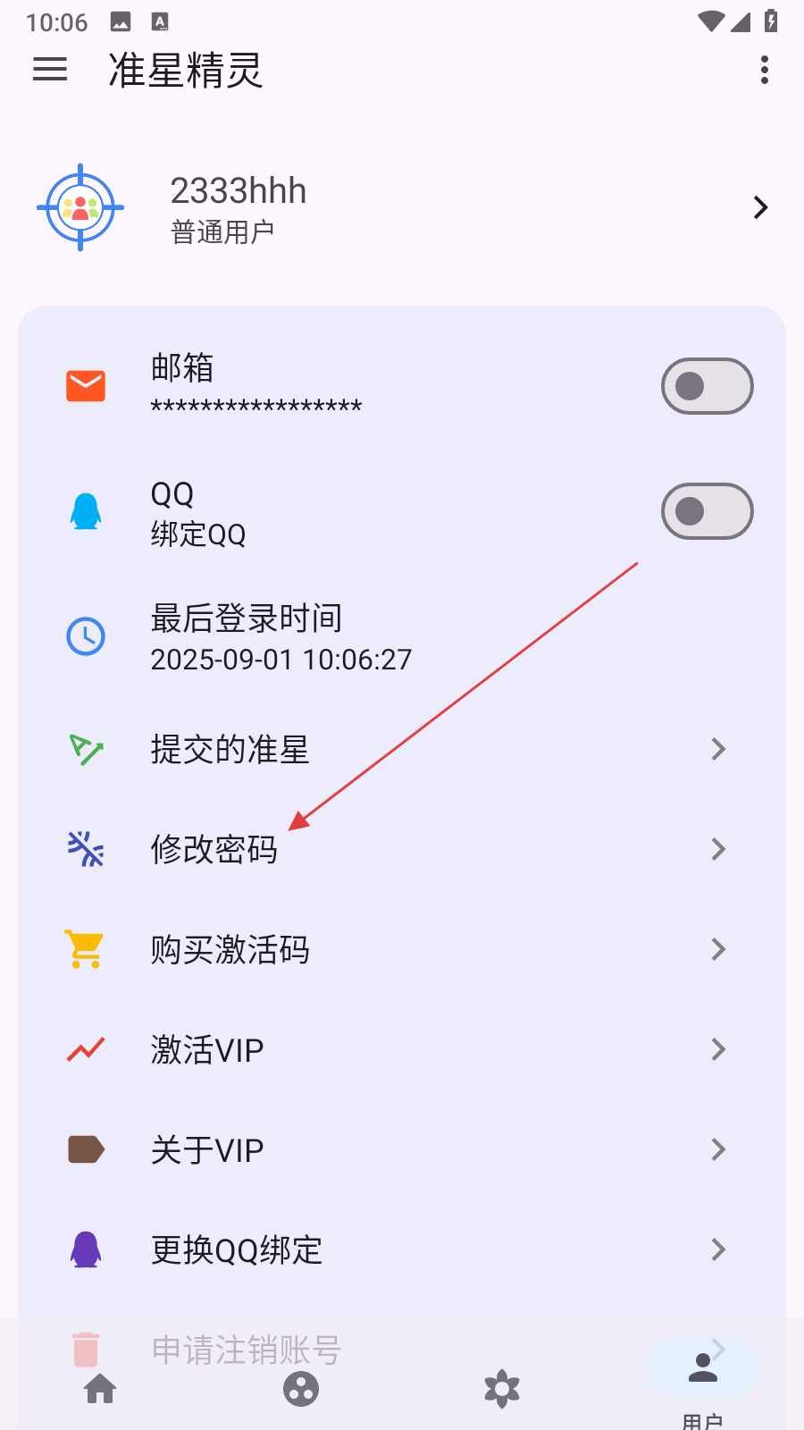 1、打開準星精靈應(yīng)用,點擊底部導航欄最右側(cè)的用戶選項,進入用戶個人中心頁面。