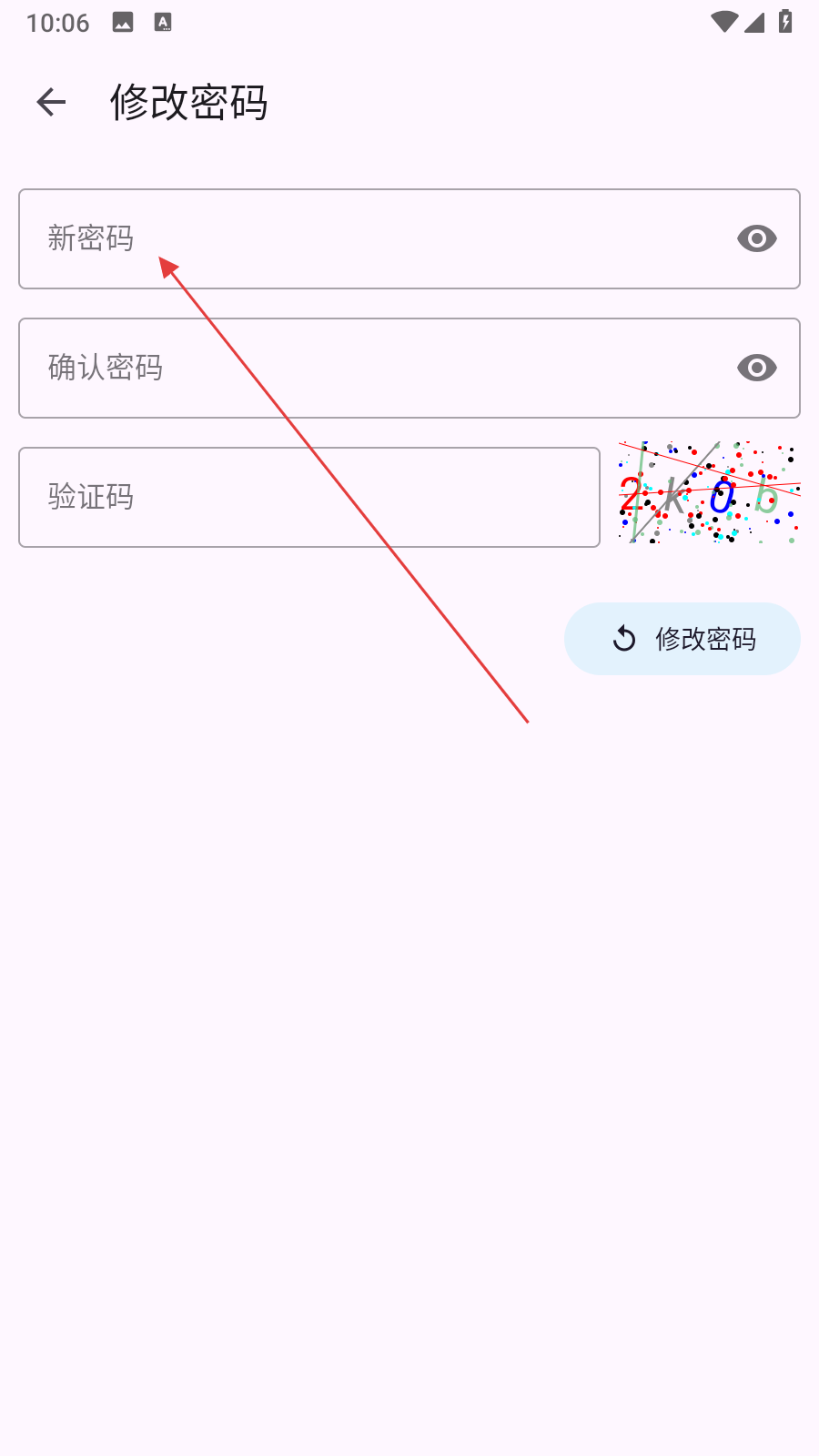 3、在修改密碼界面,依次輸入新密碼,確認密碼,并填寫右側(cè)驗證碼,輸入完成后點擊修改密碼按鈕,完成密碼修改操作。