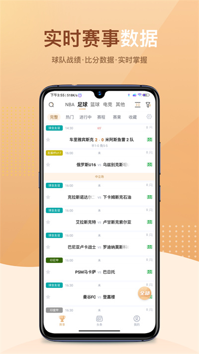 +全球知名足球賽事高清直播,手機端隨時收看提前了解比賽前瞻和陣容狀態(tài)