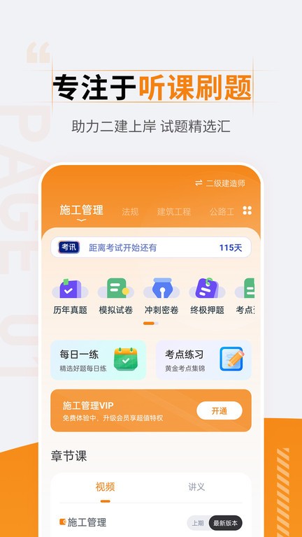 二級(jí)建造師準(zhǔn)題匯app是有精準(zhǔn)解析一級(jí)建造師、半考題庫千萬題庫。以高分通過二級(jí)建筑考試。全面、專業(yè)、簡(jiǎn)單、實(shí)用的智能學(xué)習(xí)軟件,適合準(zhǔn)備二級(jí)建造師考試的同學(xué)。講義、視頻和練習(xí)三位一體,360 度全方位覆蓋,以及全面、專業(yè)的內(nèi)容。精選題庫、名師述說、章節(jié)精講、高頻考點(diǎn)、高頻易錯(cuò)題、歷年真題、隨時(shí)隨地沖刺學(xué)習(xí),讓你備考省時(shí)省力。二級(jí)建造師準(zhǔn)考集涵蓋了二級(jí)建造師考試近五年的真題、模擬題、日常習(xí)題、考試章節(jié)習(xí)題、二級(jí)高頻題。歡迎你的下載使用。