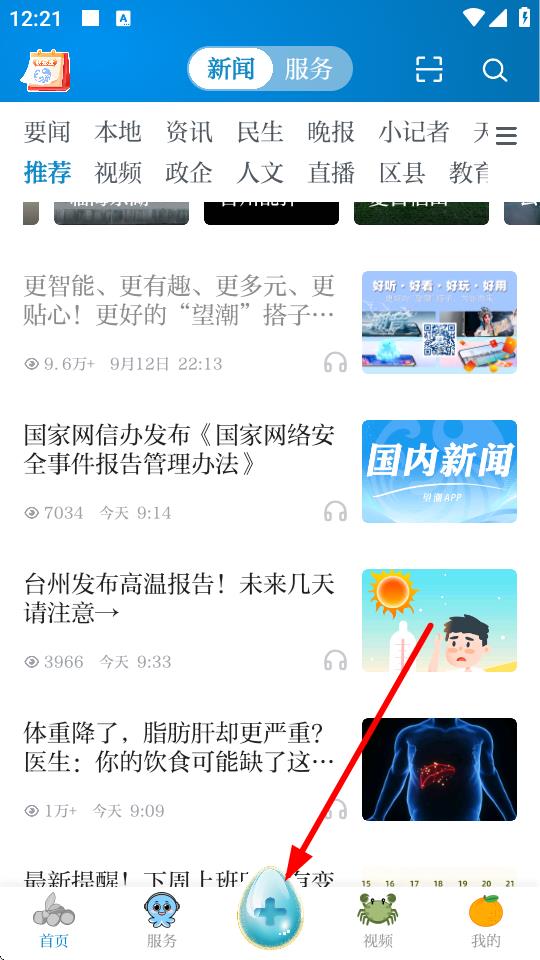 1、打開(kāi)望潮app,點(diǎn)擊底部導(dǎo)航欄中的服務(wù)選項(xiàng)。