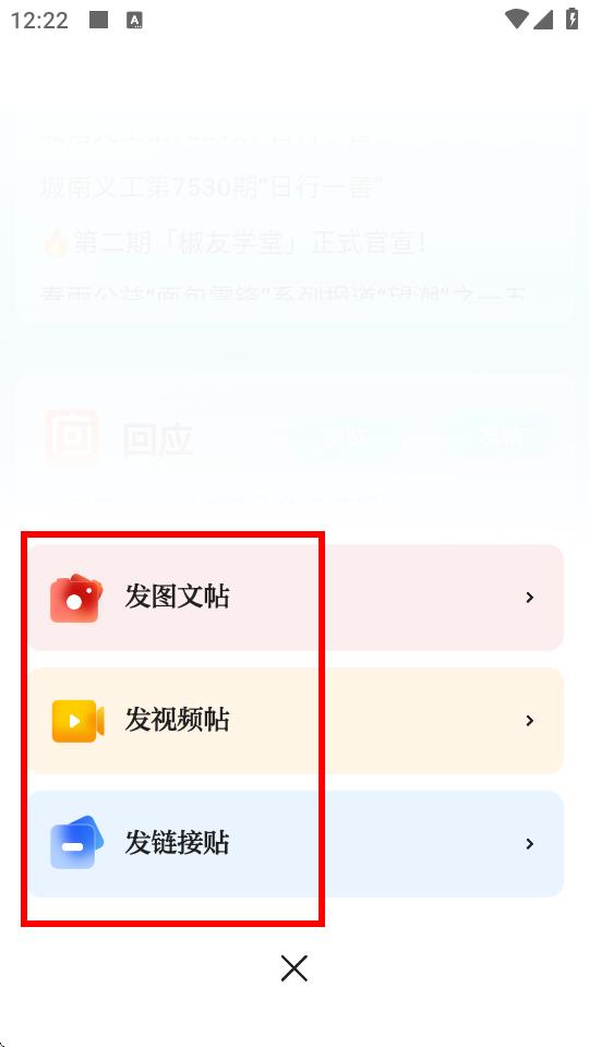 3、在彈出的發(fā)帖類(lèi)型選擇框中,選擇發(fā)圖文帖、發(fā)視頻帖或發(fā)鏈接帖,以發(fā)圖文帖為例。