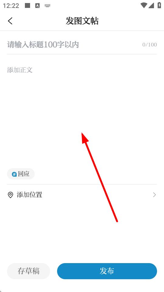 4、進(jìn)入發(fā)圖文帖頁(yè)面后,輸入標(biāo)題、正文內(nèi)容,還可添加位置信息,完成后點(diǎn)擊發(fā)布即可。