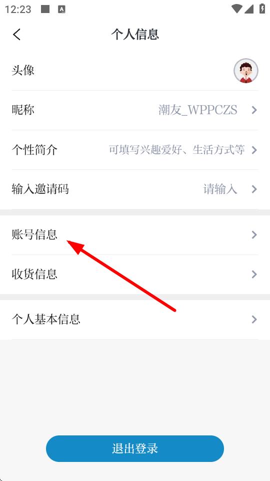 3、在個人信息界面中,點擊賬號信息選項。