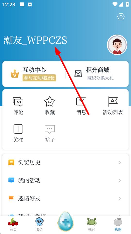 2、在我的頁面,點擊頭像旁邊的用戶名區(qū)域,進入個人信息界面。