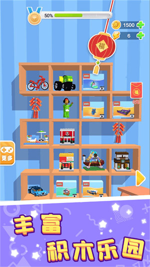 積木收集大師是一款經(jīng)典的積木游戲,可以讓你用磚塊建造豐富多樣的建筑和場景,令人滿意的休閑游戲一定會讓你找回童年的快樂和久違的想象力,只要找到你需要的部分,并將其插入到位,快來開啟一場積木搭建之旅吧!