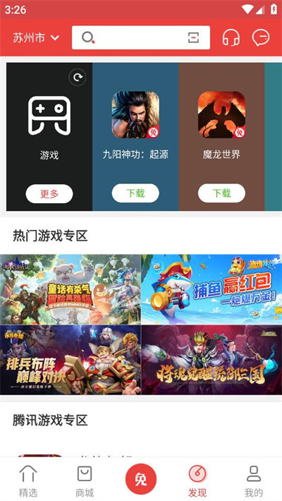 2、免費商城匯集了當下熱門手游,為玩家提供海量手游作品、經(jīng)營策略、體育競技、角色扮演、創(chuàng)意休閑等類型游戲