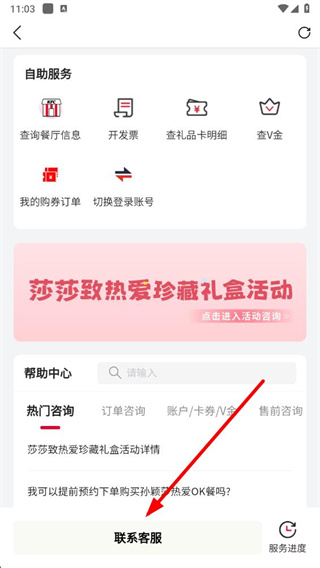 3、在客服界面中,點擊下方的聯(lián)系客服按鈕,進入客服服務選擇頁面。