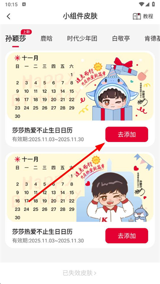 3、在小組件頁面,選擇想要的皮膚樣式,點擊對應的去添加按鈕,進入添加引導流程。