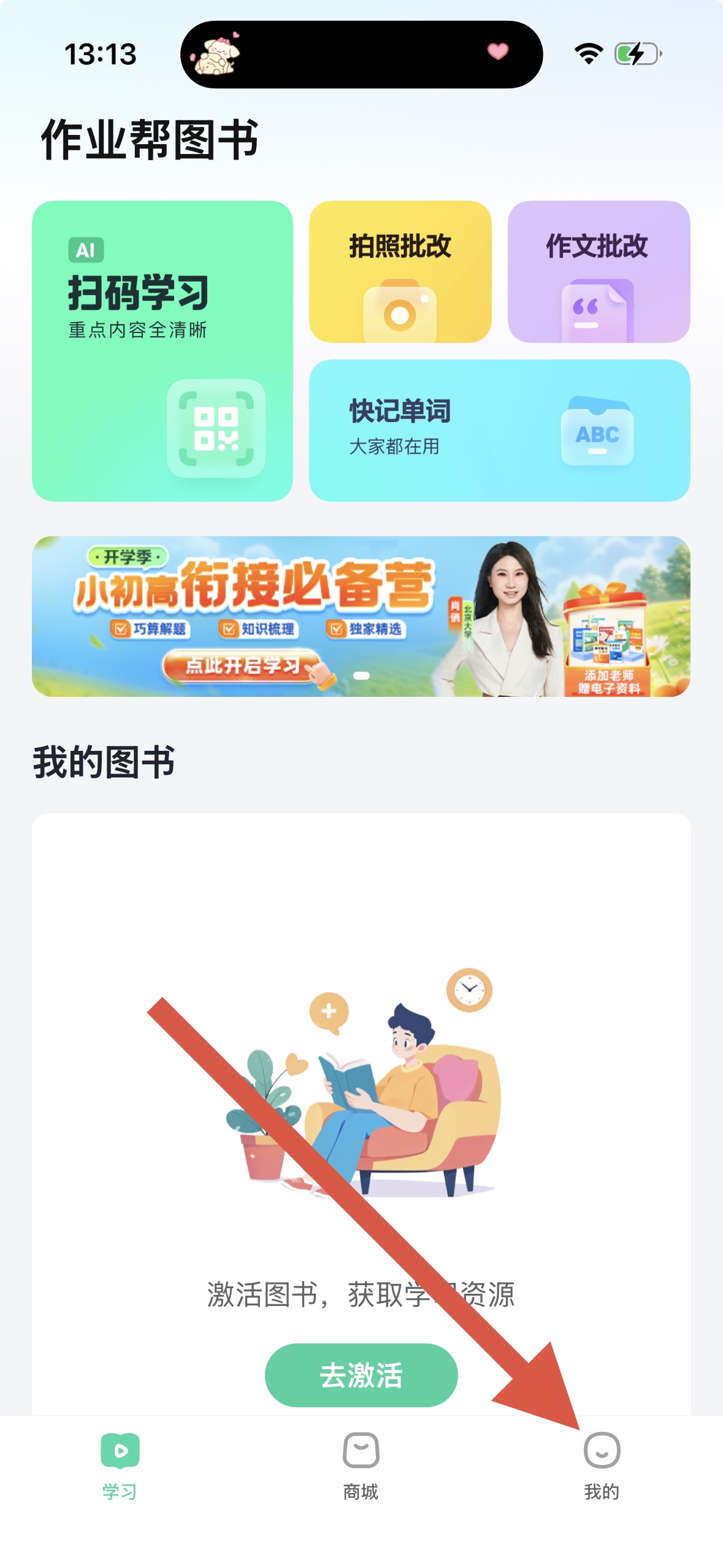1、打開作業(yè)幫圖書app,點擊底部導航欄中的我的選項。