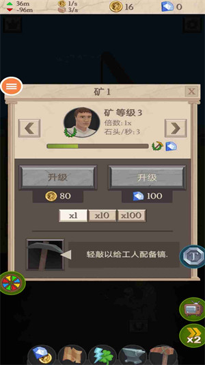1、許多珍貴的礦物就會慢慢地被挖掘出來,你可以雇傭大量的礦工來快速挖礦。