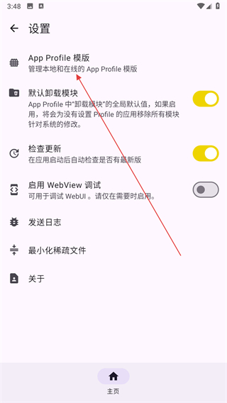 2、在設(shè)置頁面,點(diǎn)擊App Profile模版選項(xiàng)。