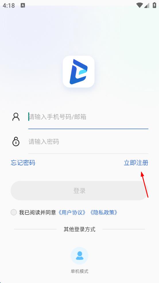 2、在登錄頁面,點擊“立即注冊”選項,進入用戶注冊頁面。