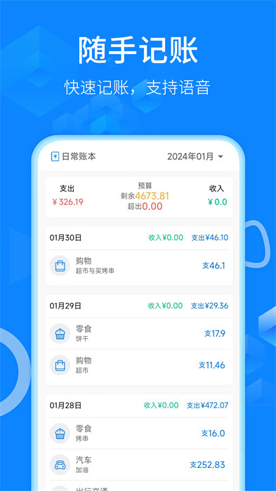 2.提供簡單的記賬方法。您可以使用語音輸入保留您的帳戶并在一秒鐘內(nèi)打開它;