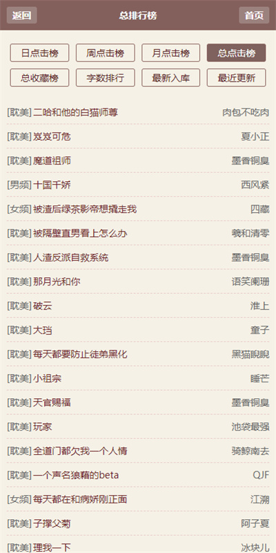 +小說種類很豐富分類也很多,而且按性別分類的也很豐富每天持續(xù)更新海量佳作全部免費(fèi)