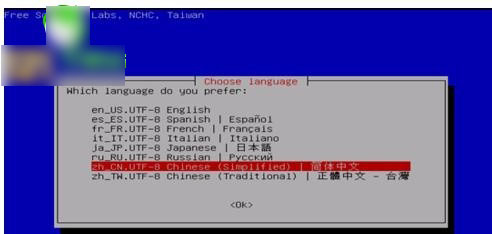在使用語言菜單中選擇"zh_CN.UTF-8Chinese(Simplified)| 簡體中文"。