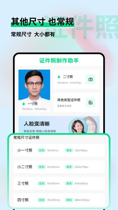 證件照制作助手是免費(fèi)證件照修圖軟件,具有自然美、操作智能化、功能便捷等特點(diǎn),多種保存格式可自定義選擇,支持一鍵更換背景色,操作非常簡(jiǎn)單易用,簡(jiǎn)單易用的證件照制作工具規(guī)格齊全,功能強(qiáng)大,讓您自由切換背景顏色和尺寸。免費(fèi)制作證件照,可以免費(fèi)下載并保存在手機(jī)上的高分辨率照片,舊照重制,記憶永存,進(jìn)行多方面的美顏修圖,達(dá)到你滿意效果。