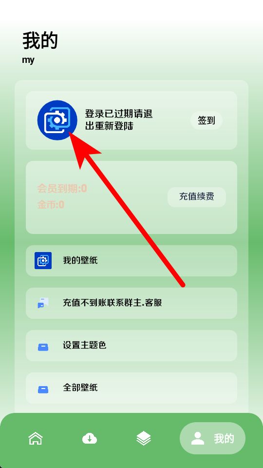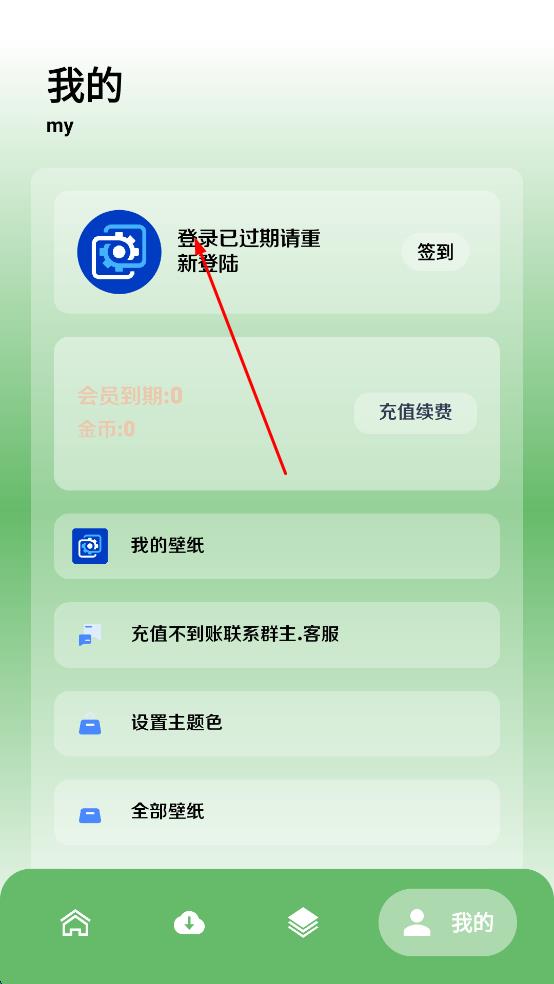 2、在個人界面,點擊登錄已過期請退出重新登陸區(qū)域,進(jìn)入注冊登錄頁面。