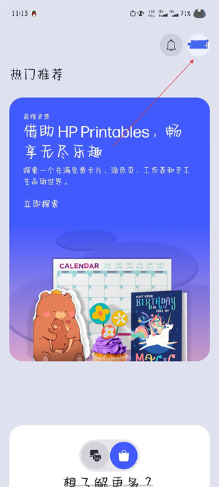 1、打開惠普云打印應(yīng)用,點擊主界面右上角的頭像圖標(biāo)。