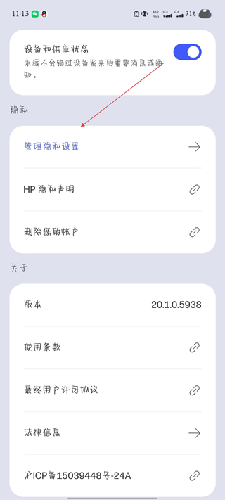 3、在設(shè)置頁面中,找到管理隱私設(shè)置選項并點擊。