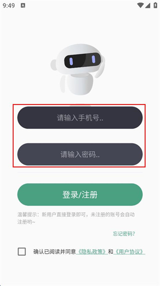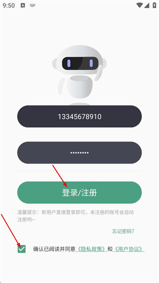 4、勾選確認已閱讀并同意隱私政策和用戶協(xié)議,點擊登錄/注冊按鈕。
