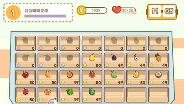 3、您需要定期購買水果,根據(jù)菜單選擇需要的水果種類,收集稀有水果,你應(yīng)該可以制作稀有奶茶。