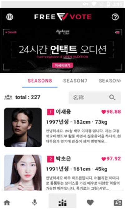 freevote投票下載官方最新版為粉絲們打造的一款專為偶像們投票打call的平臺,平臺中可以搜索到所有的偶像和團體、個人等,帶給粉絲們一個更加感興趣的精彩內(nèi)容,大家平時可以輕松的獲取各種福利活動,為大家提供更多全面的福利活動。