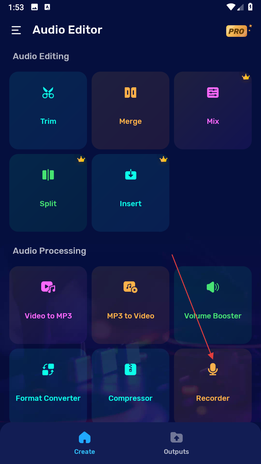 1、打開音頻編輯器應(yīng)用,在功能區(qū)找到錄音相關(guān)功能并點(diǎn)擊,進(jìn)入錄音界面。