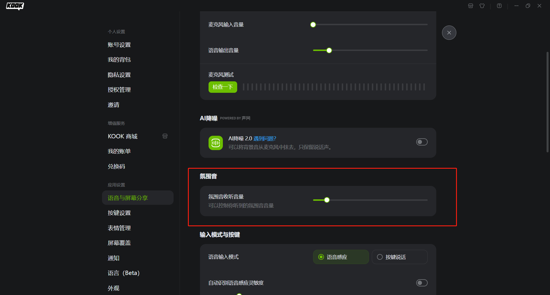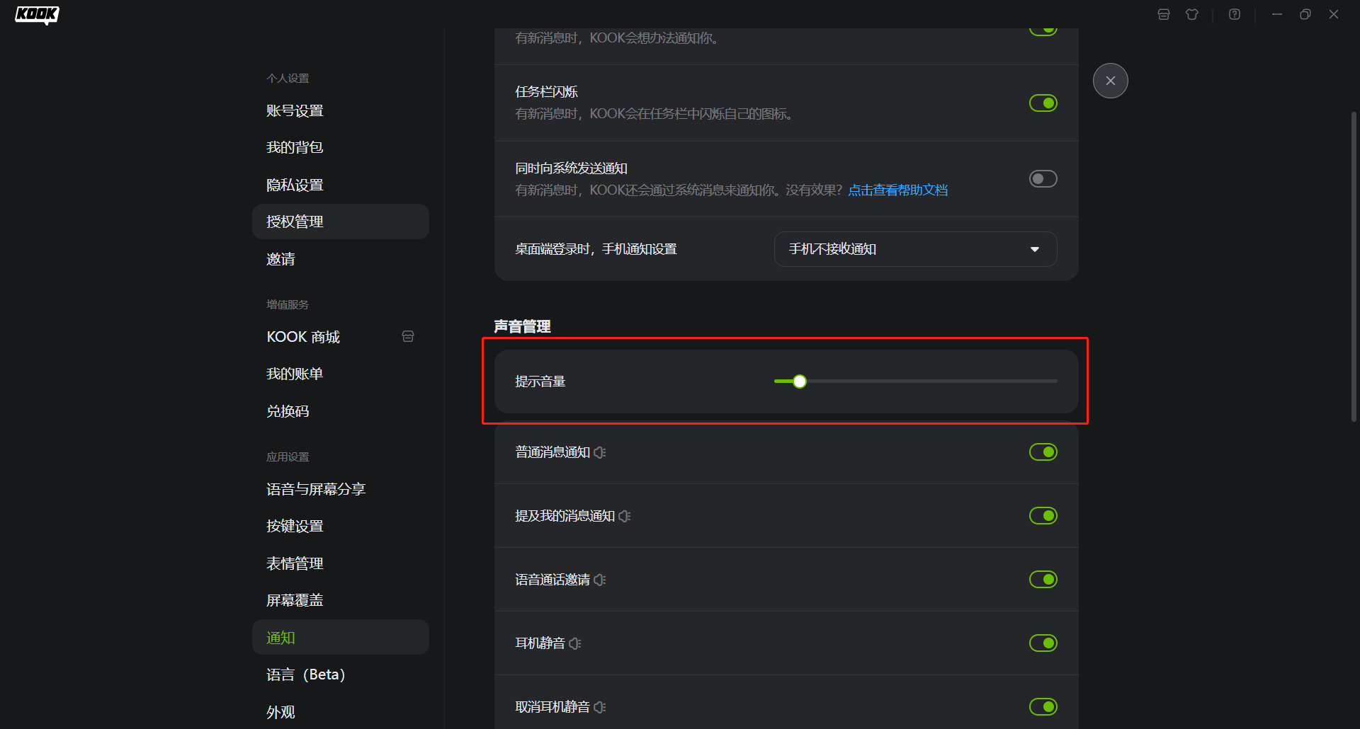 首先確保提示音及氛圍音的接收音量是開啟的,位置如下圖所示
