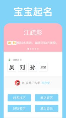 1、大家都可以通過在這個(gè)軟件給寶寶取名,以及解釋寶寶名字的含義。