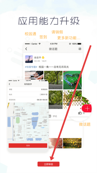 一款不錯(cuò)的校園應(yīng)用軟件,學(xué)生用戶可以通過手機(jī)客戶端查看校園資訊、校園公告、校園招聘等信息,及時(shí)了解校園最新動(dòng)態(tài),校友們可以在線實(shí)時(shí)互動(dòng),分享身邊的新鮮趣事,體驗(yàn)精彩的校園生活,為天津高校大學(xué)生量身定制的一款移動(dòng)校園app,通過智能手機(jī)服務(wù)在校大學(xué)生的教育、生活、求職等,是一個(gè)綜合信息服務(wù)平臺(tái)。目前,很多大學(xué)生已通過掃碼下載開始使用。